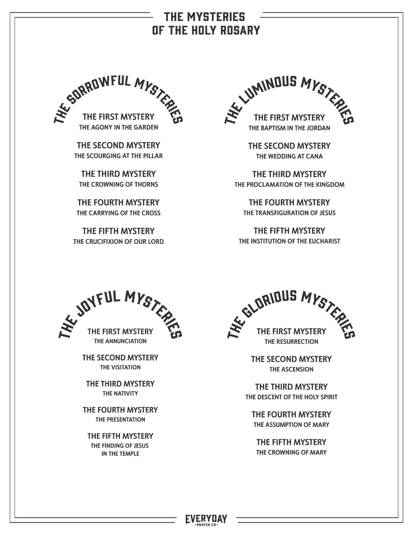 - Sunday: Glorious Mysteries